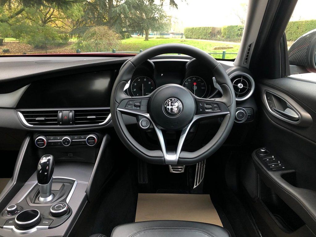 Veloces Are Very Pleased To Be Able To Offer For Sale This Stunning Velocefoglio Giulia ..Finished In Classic Alfa Red With Full Black Leather Interior... This Car Comes With Full Ti Kit With 19" Quadrifoglio Alloy Wheels With Stepped Tyres.. Full Carbon Pack Which Includes Carbon Fibre QF Rear Spoiler, Carbon Mirrors & Carbon Front Grill...Black Pack. Dab Stereo & Speed Camera Warning System (You Need It!) ...Fantastic 8 Speed Auto Gearbox With Beautifully Crafted Alloy Flappy Paddles ..Winter Pack With Heated Seats & Heated Power Folding Door Mirrors..6 Way Electric Memory Seats..8.8 Navigation with inbuilt Apple Carplay / Android Auto..Ambient Lighting + Led Puddle Lights..Bluetooth Phone & Music Interface..Front & Rear Radar Parking Sensors....Chromatic Rearview Mirror...Sports Alloy Pedals....Cruise Control.. Black Brembo Calipers...ALFA DNA Switchable Driving Modes....With 280BHP on Tap This Really Is An Incredibly Rewarding Car To Drive .Alfa Enthusiast Owner With Full History..£165 Road Tax & Ulez Free..Ask about our Ascari Tuned Exhausts & Ascari Fast Road Remaps..WE ARE FINANCE CREDIT EXPERTS & STILL HAVE SOME GREAT RATES..Please Call For Details.. ESTABLISHED FOR OVER 30 YEARS ..ALL OUR CARS ARE PREPARED TO THE HIGHEST OF STANDARDS IN OUR FULLY EQUIPPED WORKSHOP..BUY WITH CONFIDENCE FROM VELOCES..WE CAN ARRANGE UK WIDE DELIVERY OR CLICK & COLLECT FOR SPEED & CONVENIENCE..RESERVE THIS CAR NOW FOR JUST £99..