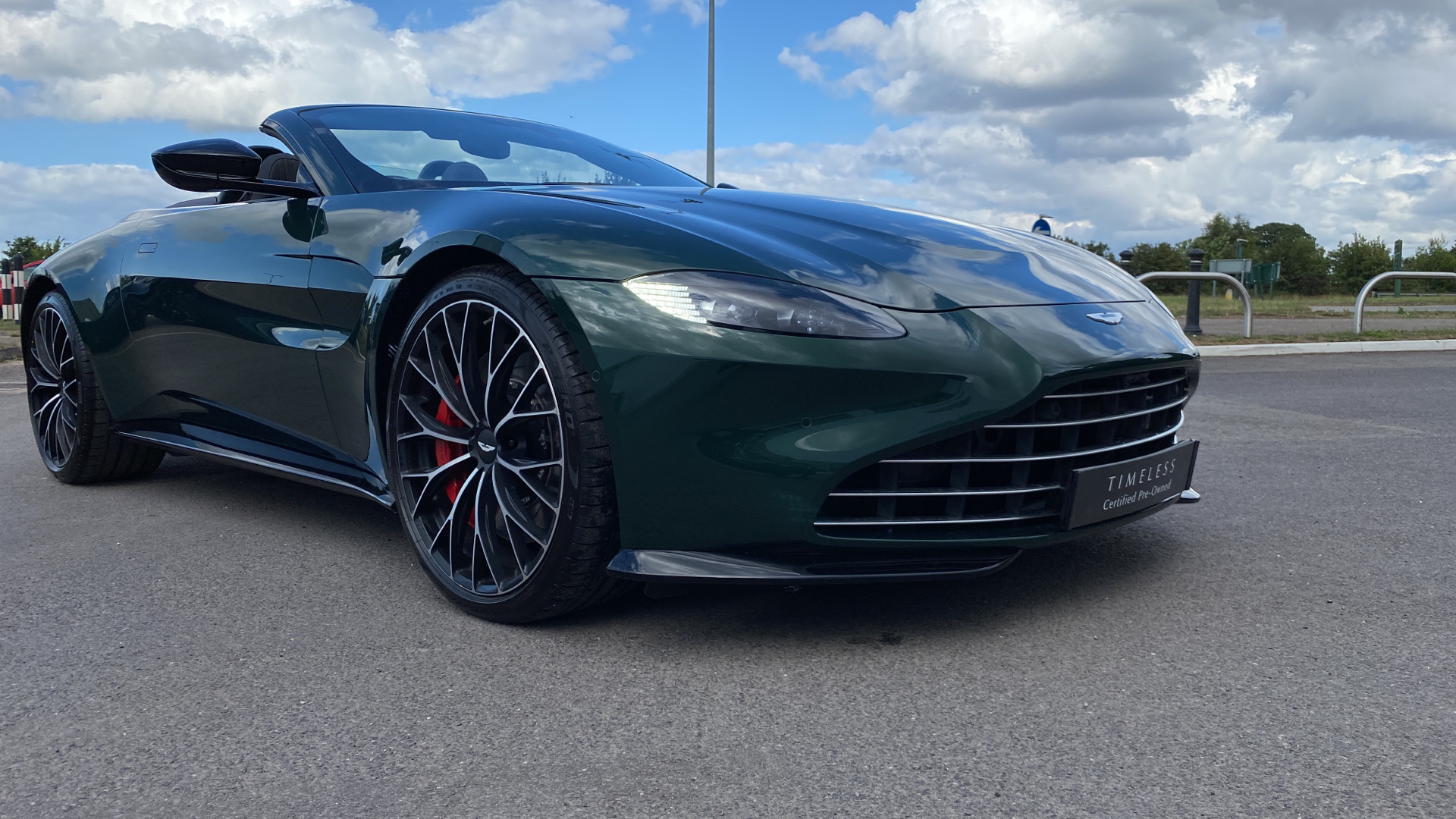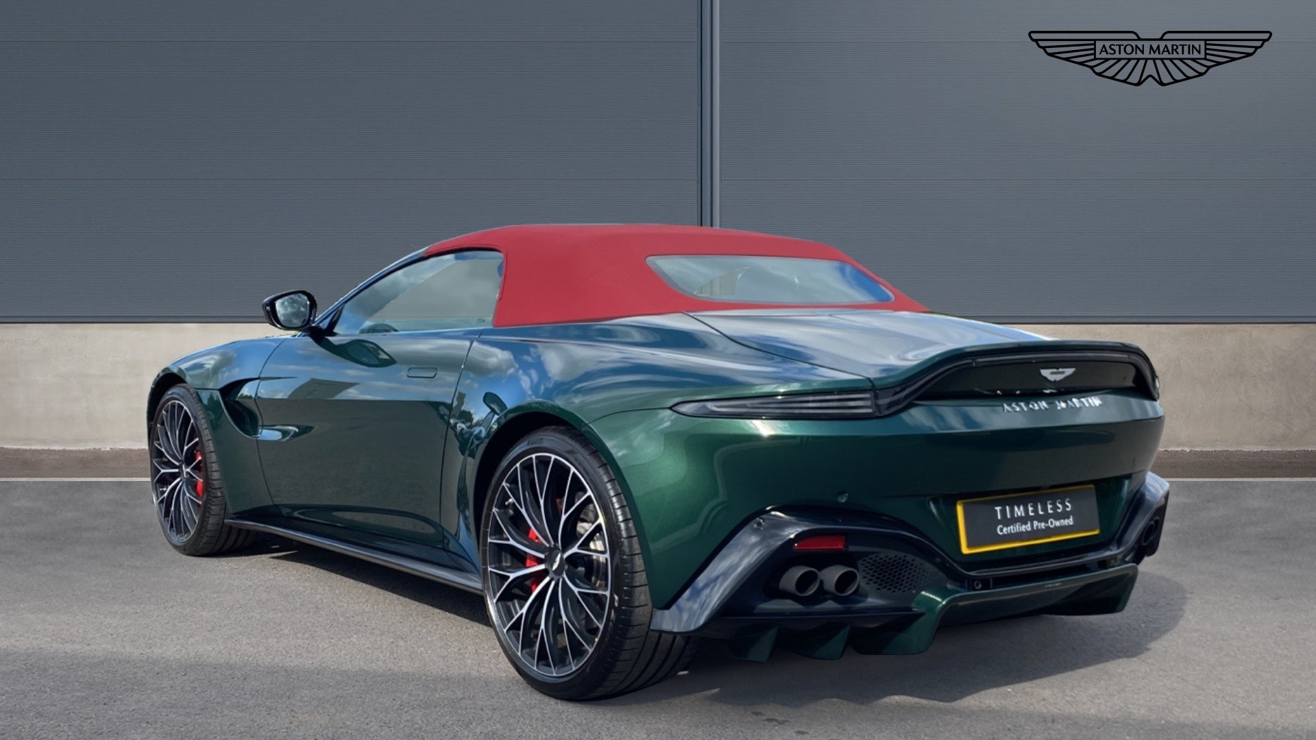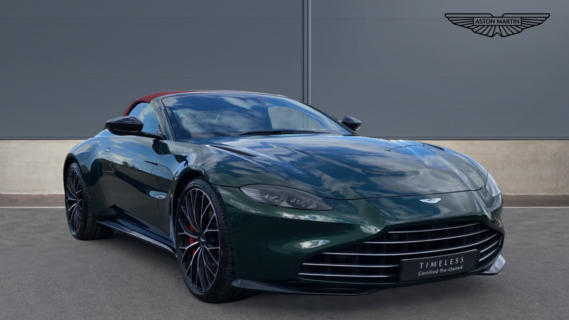 This VAT Q Vantage Roadster is finished in Q Heritage Buckinghamshire green paint and has over 38k worth of factory options . Over 38K of factory options on this VAT Q car including : Premium Audio / Red calipers / heated + ventilated seats / Q Heritage special exterior paint/front vaned grille / Sports plus seats/satin dark chrome jewellery pack/contrast stitch / smoked rear lights/tracker / upper and lower black pack / 21 inch satin black diamond turned wheels . CLICK-COLLECT-DRIVE: Reserve online today and collect it safely at our dealership or we'll deliver to your door.