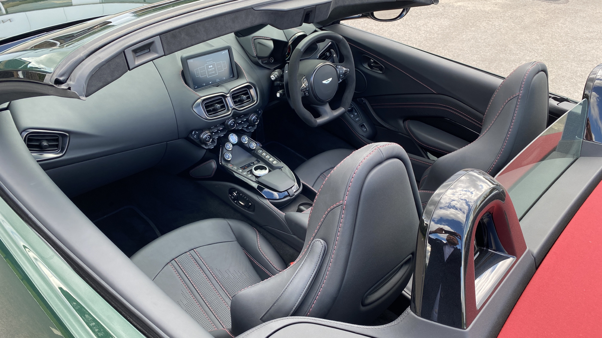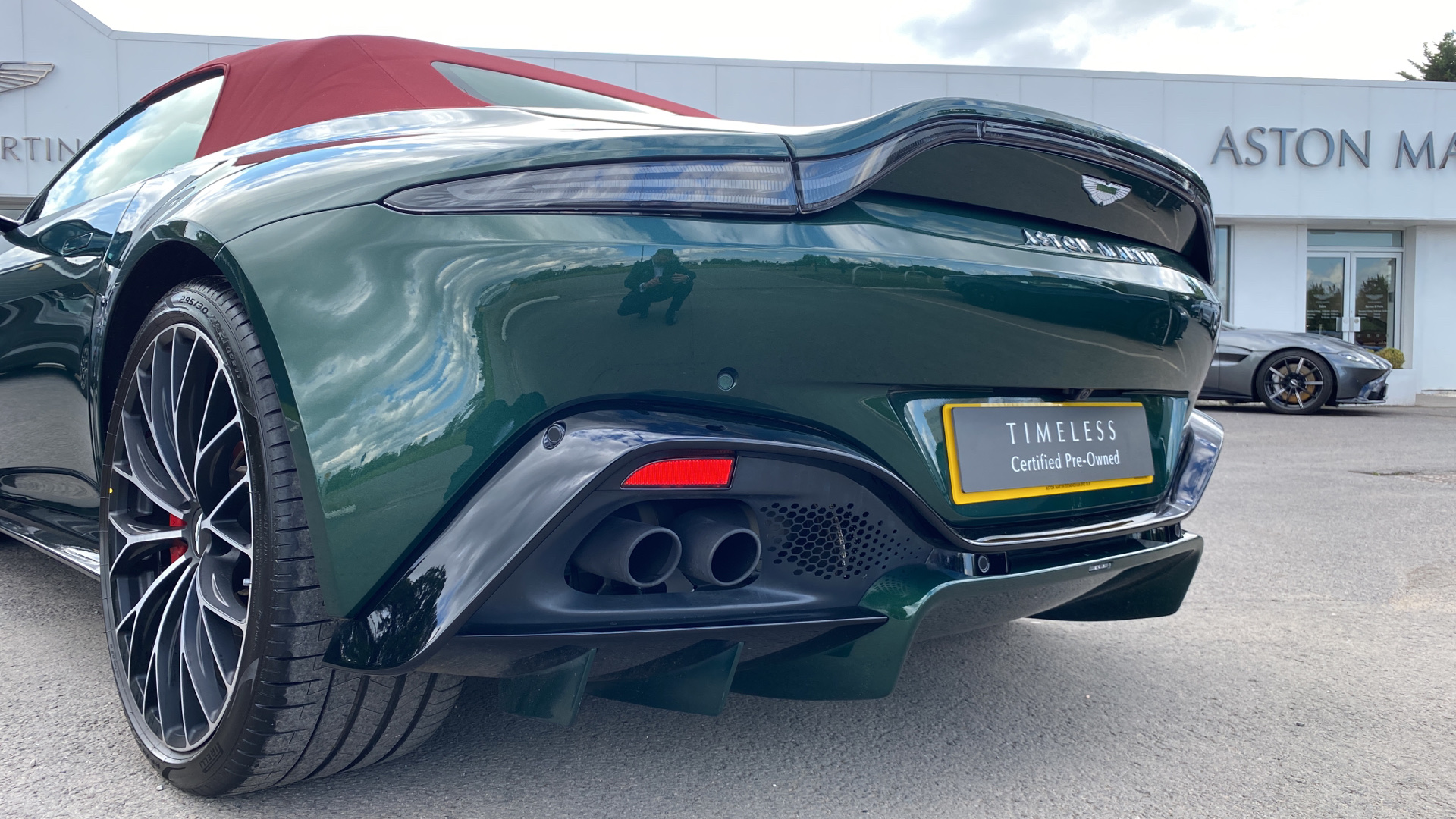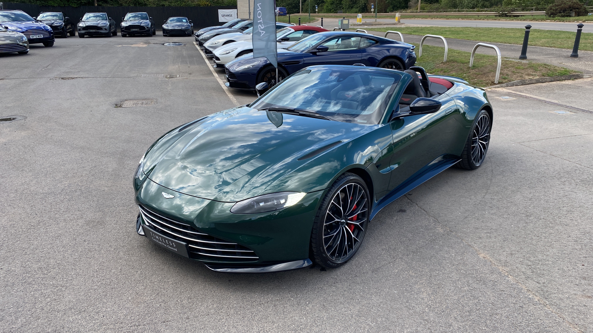 This VAT Q Vantage Roadster is finished in Q Heritage Buckinghamshire green paint and has over 38k worth of factory options . Over 38K of factory options on this VAT Q car including : Premium Audio / Red calipers / heated + ventilated seats / Q Heritage special exterior paint/front vaned grille / Sports plus seats/satin dark chrome jewellery pack/contrast stitch / smoked rear lights/tracker / upper and lower black pack / 21 inch satin black diamond turned wheels . CLICK-COLLECT-DRIVE: Reserve online today and collect it safely at our dealership or we'll deliver to your door.