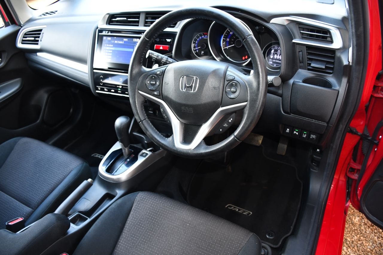 How about this for a bright small car, Honda Jazz 1.3 I-VTEC EX Nav CVT finished in Red with Black Cloth. The Jazz is such a great all rounder in that it covers so many different markets, they're frugal - 57.6 MPG is the Manufacturers Combined fuel consumption, cheap to run - £35 Road Tax and only Insurance Group 13, full of gadgets and ultra reliable as you'd expect from a Honda. The EX Navi model is packed with technology, here are are just some - Honda's App system, Bluetooth for Telephone as well as music streaming, DAB Radio which is also a CD Player and compatible with USB, iPod and HDMi. There's Satellite Navigation, Lane Departure Warning, Cruise Control, Heated Powerful Mirrors to name just a few more features. With One Owner from new and a full Service History, she's also Euro6 so ULEZ free! We are also a Supagard Dealer so for the special price of just £199 you can protect your investment - Exterior: The tough, high gloss barrier bonds to the paintwork, seals the surface against harmful UV rays, acid rain and atmospheric pollution. Interior: The upholstery & carpet are coated with a resin based formula which eases the removal of dirt and spills. This prevents staining while preserving the texture and appearance of the material. We have a wonderful range of vehicles for you to see; every car on our Website has a minimum of 30 images - see more at www.stavertongarage.com