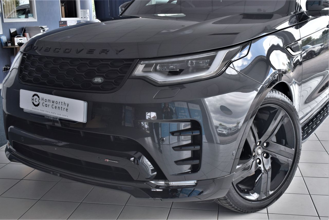 Hcc are delighted to present this NEW LR Discovery 5 D300 R-Dynamic HSE, Finished in the desirable Carpathian grey Metallic with contrasting black roof and Ebony Windsor Leather- Ebony Morzine Headlining - piano black dash inlays - Full Extended Leather Upgrade - R Dynamic Styling - unique front and rear bumpers - black accented exterior detailing - gloss black 22-inch Alloy wheels - extended black roof bars - side steps - rear privacy glass. Moving to the luxurious interior you will find ~ Technology pack - Heads up Display - Wi Fi ~ Heated and Cooled Electric Memory Seat - Dual View Touch Screen Media with Satellite Navigation Apple Android Car play - Dab Radio - Meridian Sound ~ Cold Climate Pack - Heated Multi Function Steering Wheel with Paddle Shift ~ Comfort pack ~ Caged Bulk Head ~Towing pack - Electric Deployable Tow Bar - Advanced tow assist ~ Advanced off-road capability pack with Diff Active rear locking Diff - Terrain Response 2 ~ LR Load Liner. Driver Aids inc 360 3D Surround Camera - Front Rear PDC - Lane Departure - Brake Assist - Forward Alert - Blind Spot - Auto Braking - Driver Condition - Rear Traffic Monitor - Reverse Dip Mirrors - Heated Windscreen. Supplied with LR Warranty - two keys - locking Wheel Key - Full size spare wheel. IN STOCK READY TO GO Purchase with confidence from a family run business that is an RAC Approved Dealer we have been operating from the same garage for over 25 years, we are a highly rated auto trader dealer Check out our 5 Star Reviews. All vehicles are Prepared in our on-site Workshop by our Main Dealer Trained Technicians. Our Honest Hassle Free Approach Will Make You Feel Completely At Ease. Part EX welcome HPI Clear Low APR Finance. AUTO TRADER RETAILER OF THE YEAR 2021 FINALISTS
