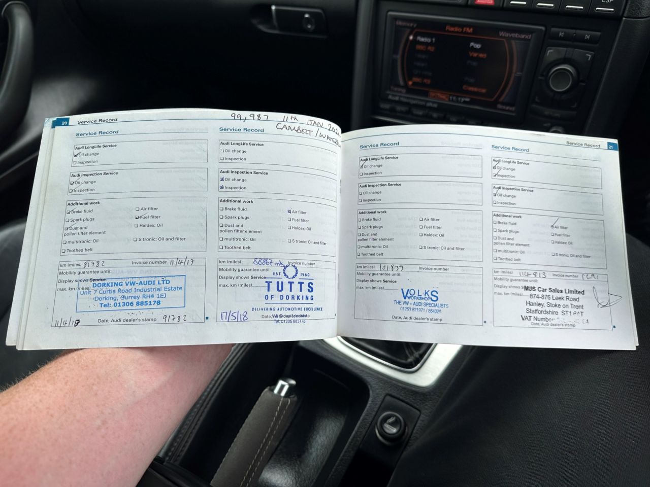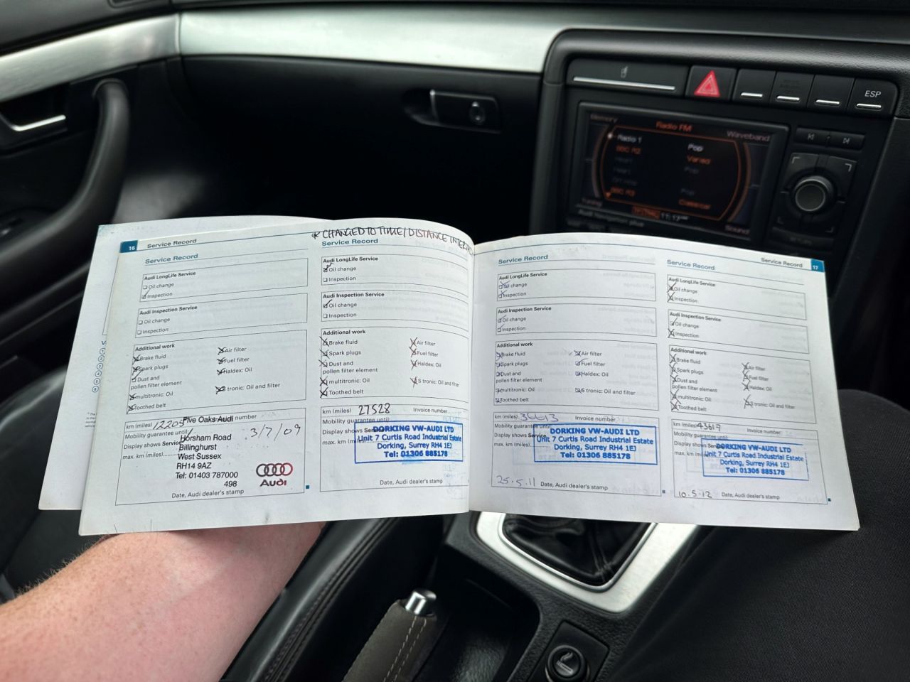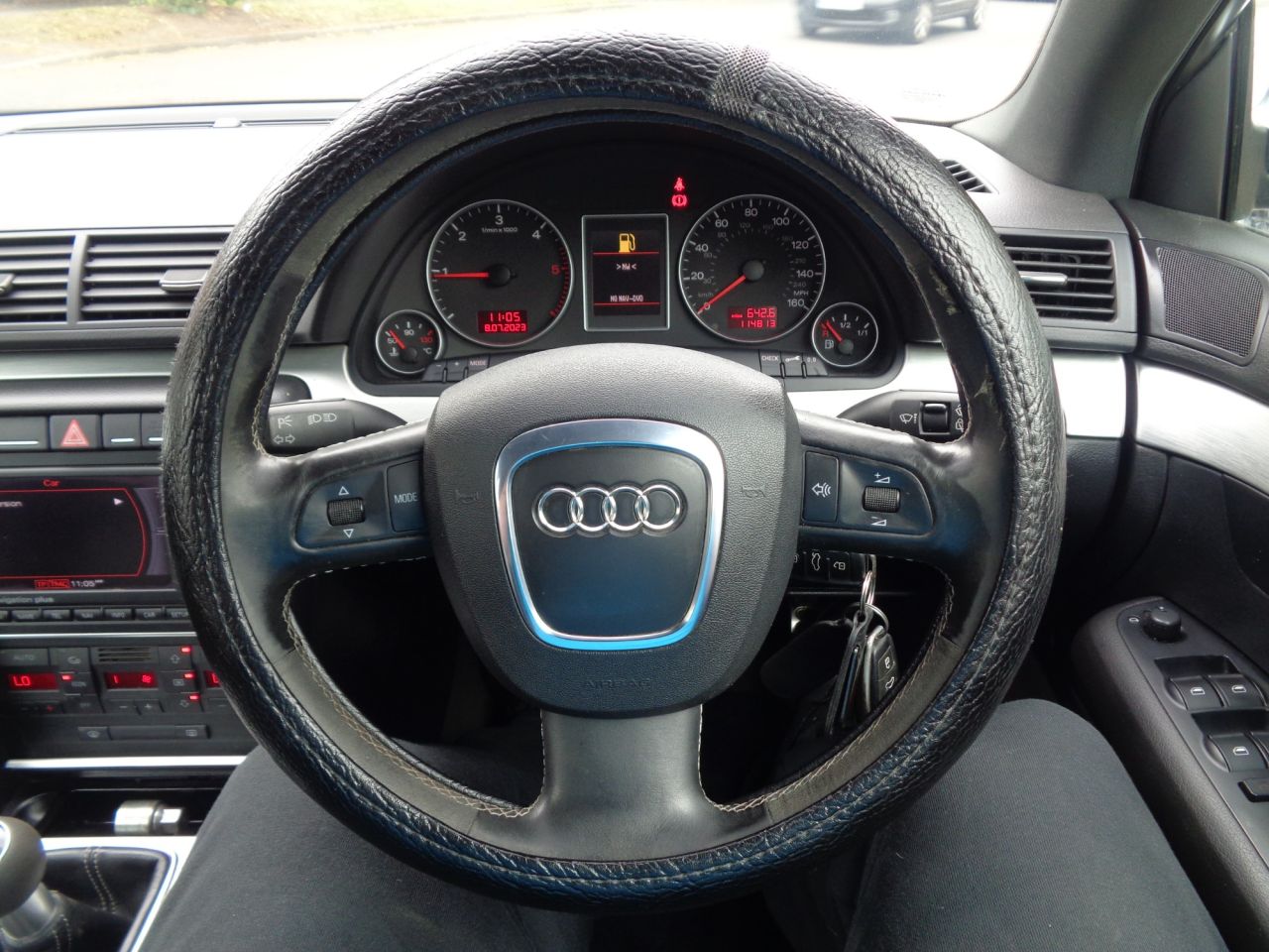 Nicely presented A4 S Line Avant finished in Quartz Grey Metallic, this is a car with sensible mileage having covered just over 7000 miles per year on average from new & is accompanied with a comprehensive service history with entries recorded at 12205, 27528, 36613, 43617, 52704, 61557, 67916, 74914, 81782, 88667, 101833 & 114813 miles respectively including a cam belt replacement at 99987 miles also. Very large specification on this model with over £6000 worth of optional factory upgrades the car offers Full S Line Embossed Upholstery, Satellite Navigation, Bluetooth Connectivity, Climate Control, BOSE Sound System, Rear Parking Sensors, 6 CD Autochanger, Black Headlining, Auto Dimming Rear Mirror, Privacy Glass, Front Fog Lights, 18" Alloy Wheels, Full Electric Windows & Electric Door Mirrors to name just a few items. The car has just been serviced & has a fresh 12 month MOT & having driven the car back from Portsmouth myself I can confirm that it runs & drives very well for its age & mileage & has very clearly been looked after by its previous keepers as the service record also demonstrates. Overall a lot of car for the money especially given the cars specification & full service record.