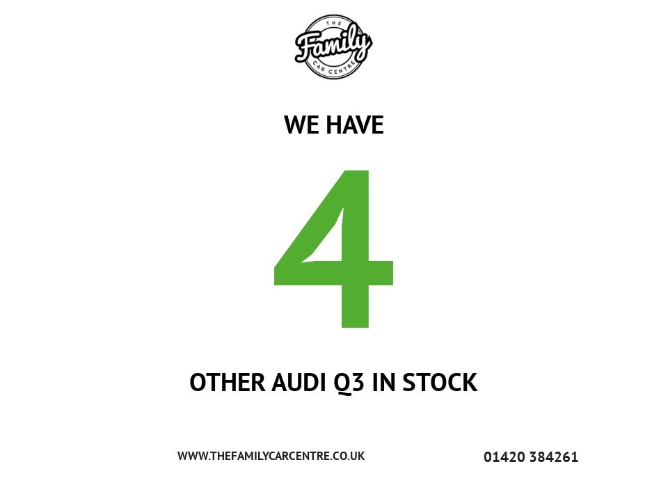 WE ARE EXCITED TO OFFER YOU THIS STUNNING AUDI Q3 IN DAYTONA GREY METALLIC FEATURES INCLUDE: S LINE SPEC, RECENT CAMBELT AND WATER PUMP REPLACEMENT AND LOADS MORE! ***ZERO DEPOSIT FINANCE AVAILABLE*** THIS VEHICLE CAN BE PURCHASED WITH A 2 YEAR CRYSTAL CLEAR GOLD WARRANTY FOR AN ADDITIONAL £800 RESERVE THIS VEHICLE FOR ONLY £100 ALL PART EXCHANGES WELCOME! CLICK + COLLECT WITH OUR BUILD AND SAVE SERVICE Contact us and we can send you a PERSONALISED VIDEO OF THE VEHICLE! LMC & The Family Car Centre have a dedicated team of finance experts waiting to help with your enquiry. We have relationships with high street lenders and specialist motoring finance houses too, that's how we help many thousands of customers secure the best finance deal for their budget! Our expertise with finance means that even if you have a poor credit rating we can help arrange finance for you! A small administration fee of £120 is added to all vehicles; we call it the "customer care package" for the preparation of your new vehicle, to make sure it's sanitised, clean and safe to drive away. We'll also take care of processing any changes with the DVLA for you! We're a family-run business trading as LMC & THE FAMILY CAR CENTRE. We've been selling cars and vans for over 40 years and we love it! Our philosophy is to match you to your perfect vehicle and a finance agreement to suit your monthly budget. Open 7 days a week and located on the Hampshire/Surrey border near Bordon. All our used vehicles come from trusted sources, go through rigorous checks, and are offered at competitive prices. We make it EASY with Zero Deposit Finance and quick Part-Exchange with the power of SELLMYCAR-FAST. Book your appointment today; we can't wait to meet you!