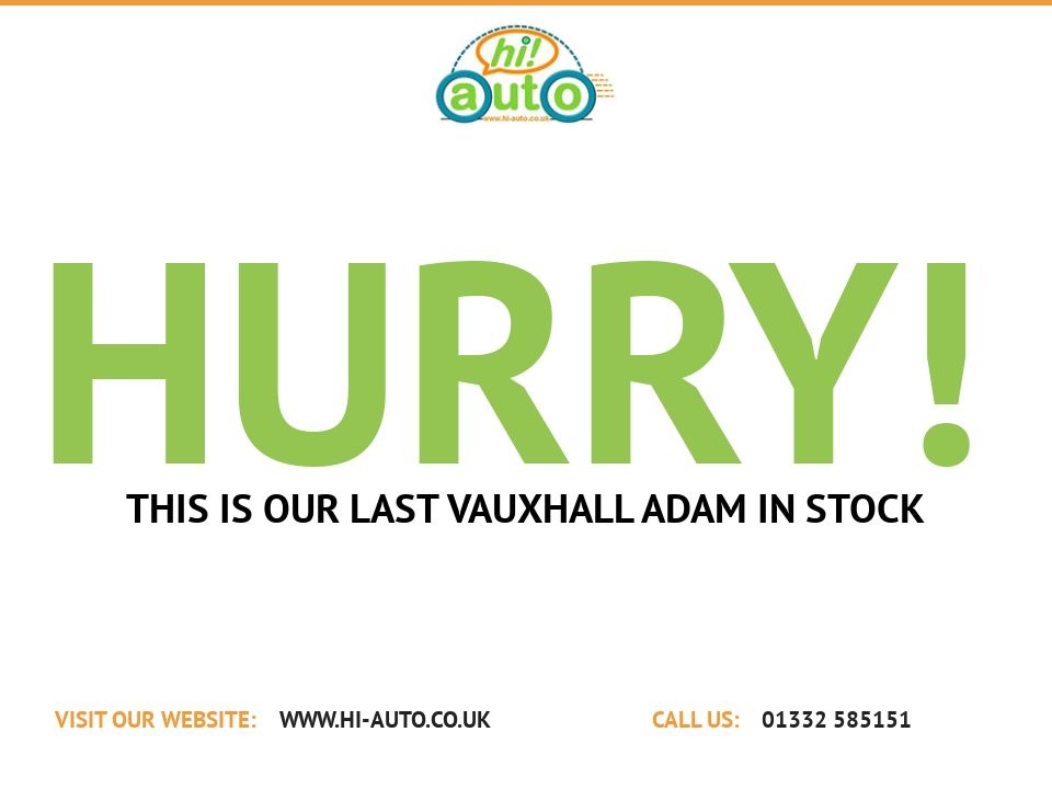 This is a fantastic example of the funky Vauxhall Adam, it's in very good condition and has a Good Service History, plus it's just had a Full Service. The car also comes with 12 Months MOT and a 6 Month Silver National Warranty for peace of mind. It has incredible specification including £1405 of Factory Fitted Upgrades - Sight and Lights Pack (Auto Lights and Wipers), Intellilink Infotainment System (Touchscreen, DAB Radio, Bluetooth Handsfree and Audio Streaming, USB Port), Rear Parking Sensors and "The Greyfather" Metallic Paint -- Competitive Finance Available - Call Us For Details -- HPI Clear -- Only 2 Owners So Far -- Very Low Mileage - 30000 Below Average -- Low Insurance - Group 9 -- Can achieve up to 51 miles per gallon combined -- All Our Vehicles Have a Thorough Professional Independent Inspection -- We Give Great Prices for your Part Exchange! -- We Can Deliver for FREE up to 50 miles and just £1 per mile thereafter -- PURCHASING OPTIONS - Call us to arrange a viewing and test drive. Or, the transaction can be completed online, via telephone or e-mail. You then choose whether to collect the car or have it delivered - with these two options you get a 14-day Money Back Satisfaction Guarantee -- 1 Year Warranty Upgrade just £199 or 2 Years for just £399! – Diamondbrite Paint and Interior Protection just £199 (RRP £399) -- Parkers Guide Says - Appealing directly to younger drivers – and the young at heart – is the Vauxhall Adam, a compact three-door hatchback sitting below the Corsa in the firm’s range size-wise, but above it in price. Vauxhall claims that what makes this car stand out as unique is the high level of personalisation a customer can specify thanks to more than a million design combinations – and that’s proved such a successful policy, it’s been copied by a number of other carmakers. The compact four-seater goes head-to-head with the Fiat 500 and MINI Hatch primarily, and features a ‘floating’ roof that makes the car look lower and more distinctive. Ramp up the Adam’s extras and its price pitches it into Audi A1 territory. Not only does it have myriad options and a fancy two-tone paintjob, it was one of the first cars in the small hatchback category to have the option of LED daytime running lights.